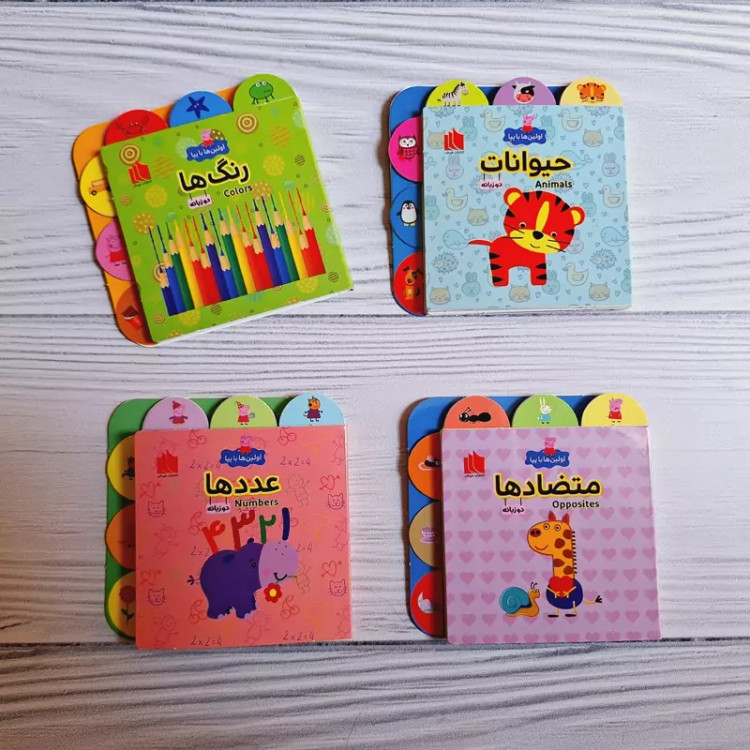 کتاب آوردم براتون عسل،دلتون غش و ضعف نره؟😉 این کتابا هم نقلی هم گلاسه و هم دوزبانه ن🤗 📚با مجموعه اولین ها با پپا که 4جلد جذاب متضادها🔶️🔸️ اعداد1️⃣2️⃣3️⃣ حیوانات🦊🦁 رنگها🔵🟣🟤 رو شامل میشه کودک مفاهیم پایه رو یاد میگیره 🔶️جنس کتاب کلاسه اس و تصاویرش خیلی جذابه کنار کتاب زبانه وجود داره که کودک به راحتی میتونه کتاب رو ورق بزنه 📍مناسب رده سنی بالای 6ماه