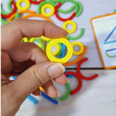 بازی میله و حلقه چوبی بازی میله و حلقه چوبی یکی از بهترین بازی های چوبی برای تقویت خلاقیت، دقت و تمرکز و پرورش مهارت دست ورزی و هماهنگی چشم و دست کودکان بالای سه سال ِ 🔶️این بازی شامل 120 قطعه میله ای ، اشکال خمیده و حلقه، 20 عدد کارت الگو دو رو رنگی و یه پایه چوبی جهت نگهدارنده کارت ها می باشد.یه کیسه هم داره که میشه تمامی قطعات رو داخل اون نگه داری کرد 🌈رنگ های قطعات این بازی چوبی بر پایه آبِ و غیر سمیِ و بسیار ایمن برای کودکان ؛در عین حال قطعات خیلی سبک و با کیفیت هستن. 🎨 روش بازی به این صورتِ که کودک با استفاده از کارت های الگو باید اشکال مختلف را طبق شکل و سایز و رنگ کارت کنار هم بچینه ؛تصاویر کارت ها به ترتیب از مرحله آسان شروع و رفته رفته برای کودک پیچیده تر و چالشی تر میشه 🎨جنس قطعات : تمام چوبی و بسیار باکیفیت 📍مناسب رده سنی بالای سه سال 🔵چه مهارتهایی به دست میاد؟ 🟢افزایش تمرکز و خلاقیت 🟢تقویت هماهنگی چشم و دست 🟢 آموزش اعمال ریاضی 🟢 تقویت مهارت حل مساله 🟢آشنایی با اشکال هندسی