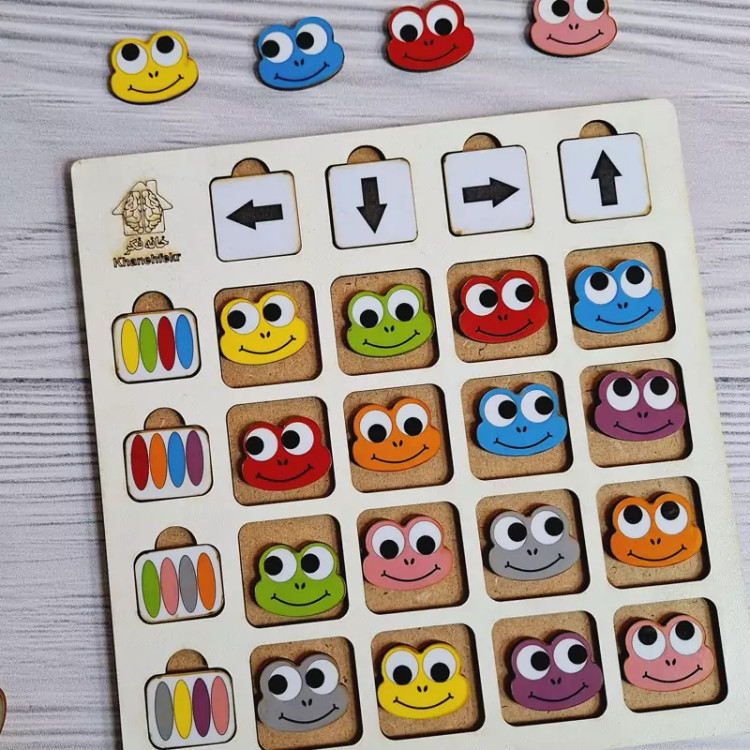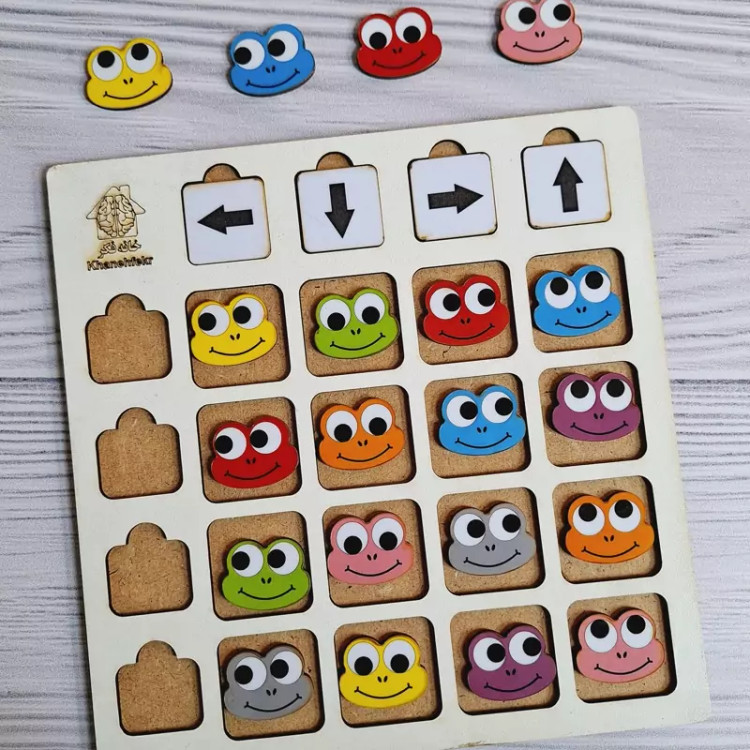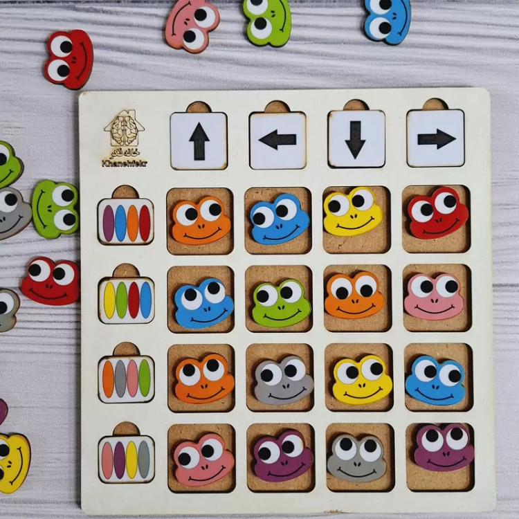 🧩جهت یاب قورباغه چوبی 🔶️این بازی با کیفیت که جنسش تماما" چوب هست جهت یابی+الگویابی+طبقه بندی رو به نور دیدت آموزش میده حتی برای مقطع پیش دبستانی و پایه اول و دومابتدایی کاربرد داره 🎨محتویات: 👈صفحه بازی چوبی 23*22سانت 👈32عدد قورباغه در 8رنگ 👈4الگوی جهت 👈4الگوی رنگی 📍مناسب رده سنی 3تا8سال 🔵چه مهارتهایی به دست میاد؟ 🟢آموزش رنگ ،جهت،طبقه بندی 🟢تقویت مهارت الگویابی 🟢بهبود دقت و تمرکز