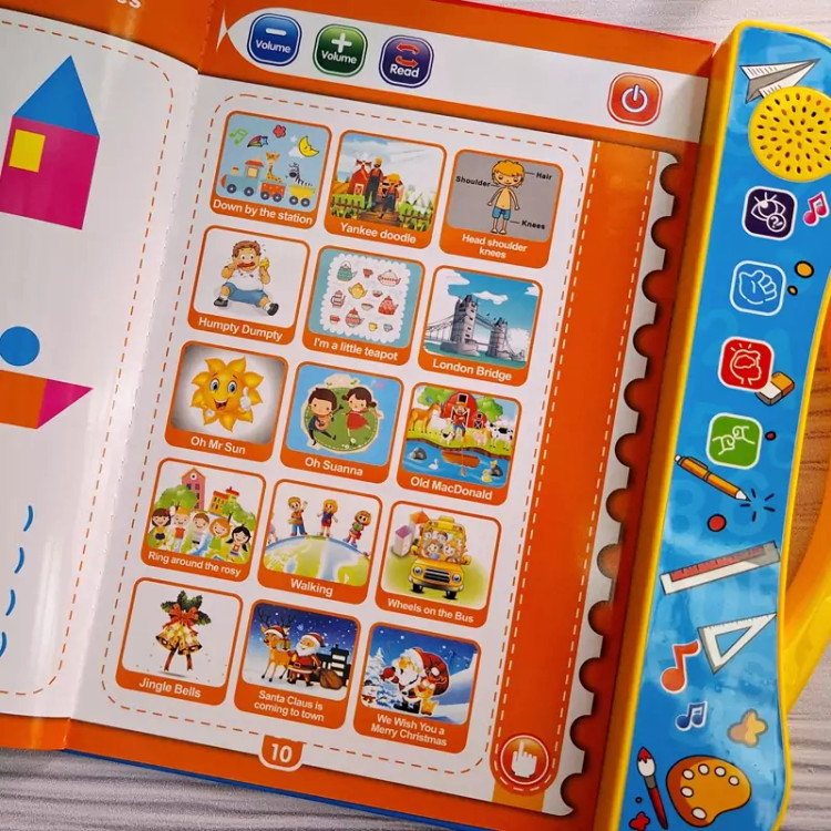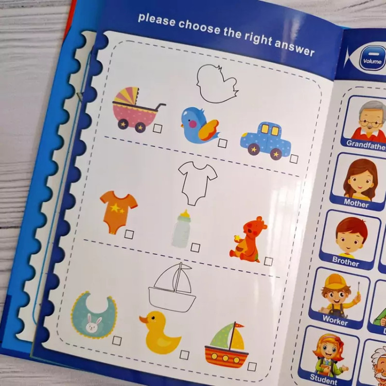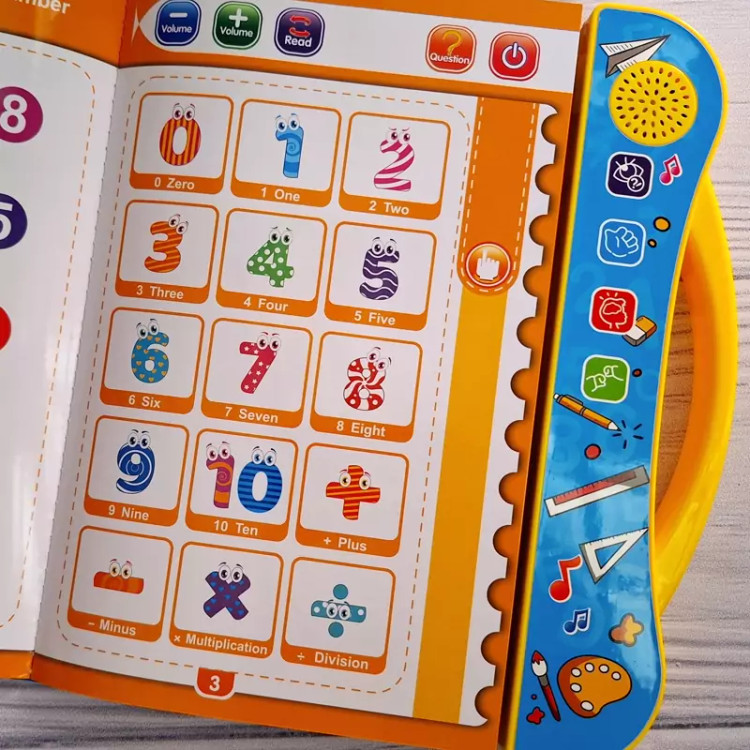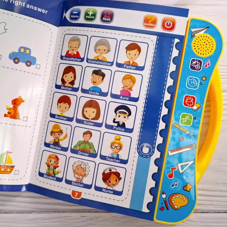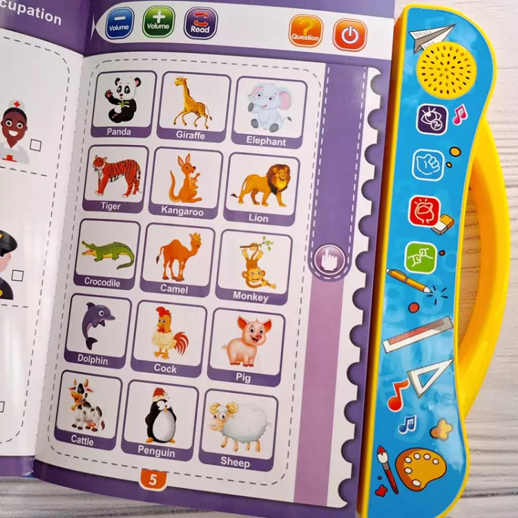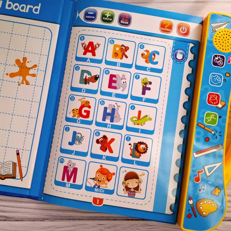 📕کتاب موزیکال زبان انگلیسی یه کتاب وایتبردی و گلاسه اس که صفحاتش لمسی و ضخیمِ 🎨این کتاب موزیکال یا سخنگو موضوعاتی مثل حروف الفبای انگلیسی🅰️🅱️ اعداد انگلیسی1️⃣2️⃣ مشاغل🦺🥼 وسایل نقلیه🚙🚲 میوه ه🍓🥑 حیوانات🦧🐘 و کلی موضوع دیگه رو به کودک آموزش میده 📘این کتاب 20صفحه آموزشی داره که سمت راست لمسی و با 6دکمه که بالا و سمت راست صفحه قرار داره کار میکنه و سمت چپ تمرین داره که با ماژیک حل میشه ،یه دکمه هم داره که کل واژگان رو پلی میکه 📍مناسب رده سنی بالای سه سال 🔵چه مهارتهایی به دست میاد؟ 🟢آشنایی با حروف الفبا و اعداد انگلیسی 🟢تقویت مهارتهای کلامی کودک 🟢گسترش دایره لغات 🟢افزایش دقت و تمرکز 🟢تقویت مهارتهای شنیداری