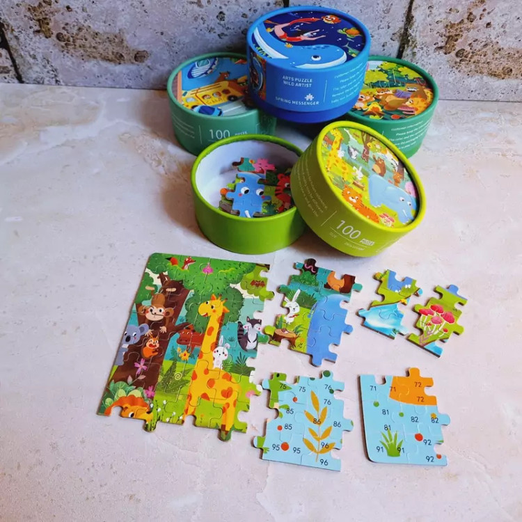 پازل آوردم براتون قند و نبات،اصلا" عسل خالص☺️ 🧩پازل 100 قطعه چوبی از جنس چوب سبک با تصاویر چاپی زیبا در4 طرح های متنوع و جذاب 🔶️پشت هر طرح شماره 1تا100چاپ شده و یه طرح جذاب دیگه پشت هر پازل هست،علاوه بر اون هر پازل یه کاتولوگ داره که تصویر کامل شده پازل رو نشون میده و چیدمان پازل رو برای کودک آسون میکنه 📍مناسب رده سنی بالای 5سال 🔵چه مهارتهایی به دست میاد؟ 🟢 مهارت حل مساله 🟢 بهبود هوش تصویری 🟢 افزایش دقت و تمرکز 🟢آموزش تطبیق 🟢تقویت دقت و تمرکز