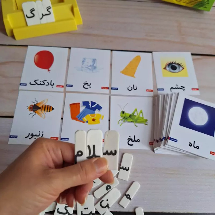 🔶️الفبای فارسی بازی تا شامل: 1_109 قطعه پازل فومی الفبای فار سی 2_یک عدد پایه پلاستیکی 3_90عدد کارت رنگی و شکل دار کلمات دورو (180 تصویر) مطابق کتاب بخوانیم و بنویسیم پایه اول دبستان کودک حروف و کلمات رو یاد میگیره