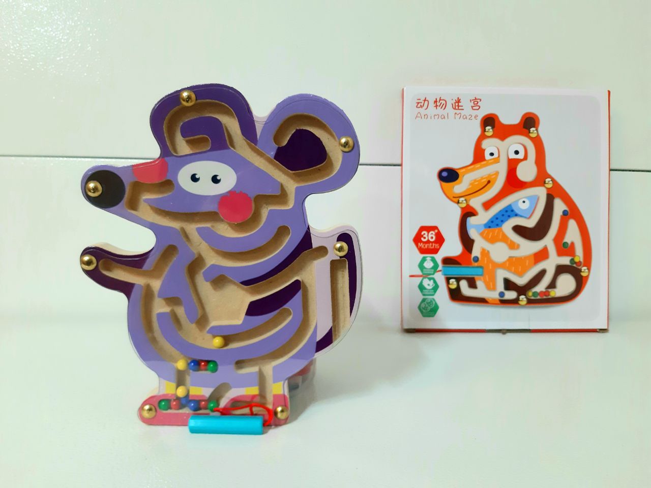🌈هر ماز چوبی یه شکل خوشگل از حیوونا داره که داخلش یه سری شیارِ و چند تا گوی رنگی داخل شیارها وجود داره،روی شیارها با یه طلق پوشیده شده و گوی هارو از افتادن محافظت میکنه