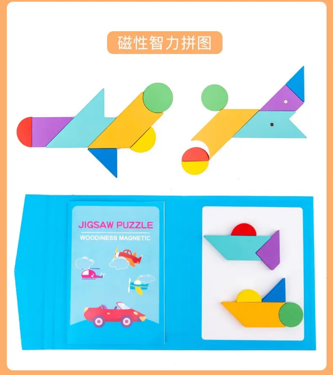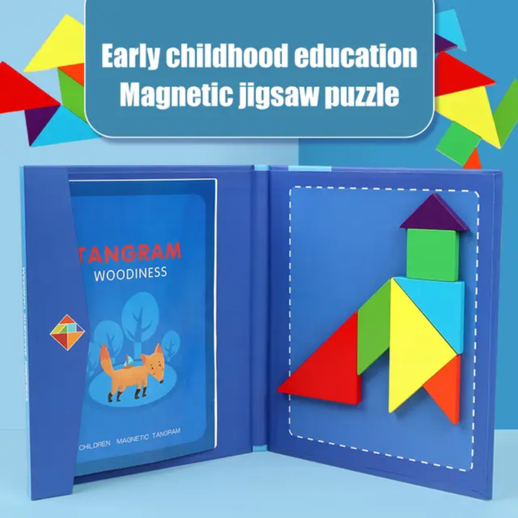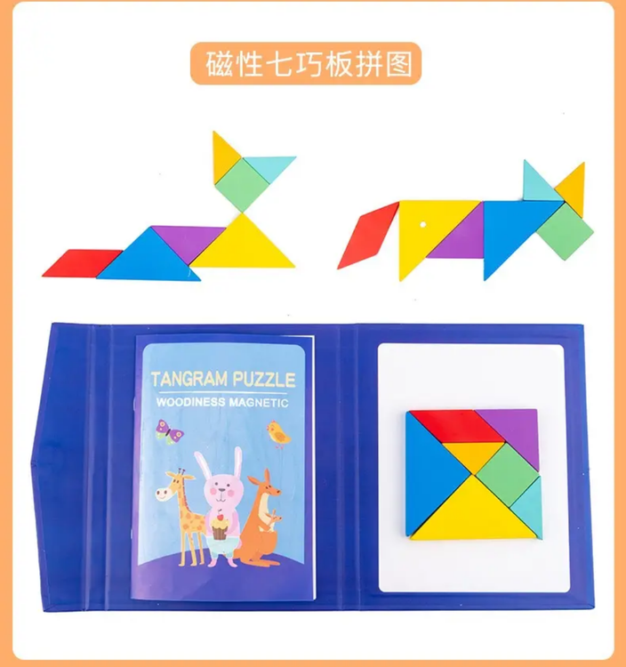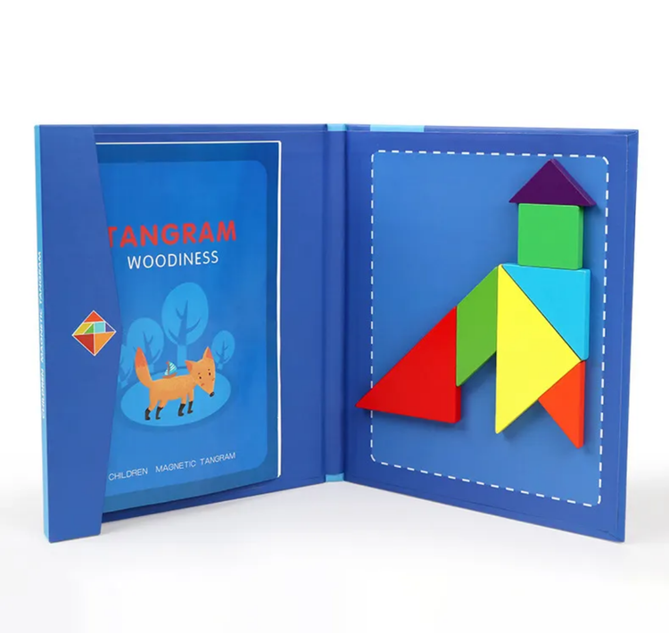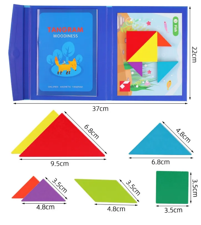 بازی فکری تانگرام چوبی مگنتی اسباب بازی در راستای افزایش مهارت های کودکان در هنگام بازی می باشد.