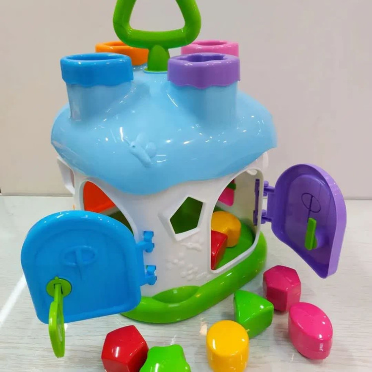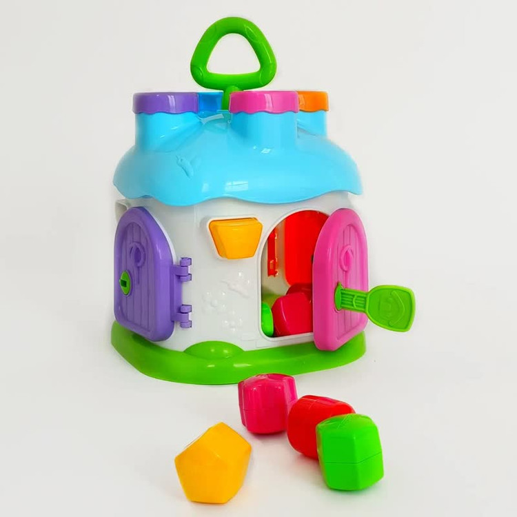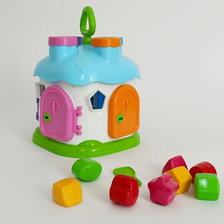 ۲. تطبیق اشکال: کودک باید هر قطعه را با حفرهی متناسب روی کلبه تطبیق داده و آن را در جای مناسب قرار دهد.