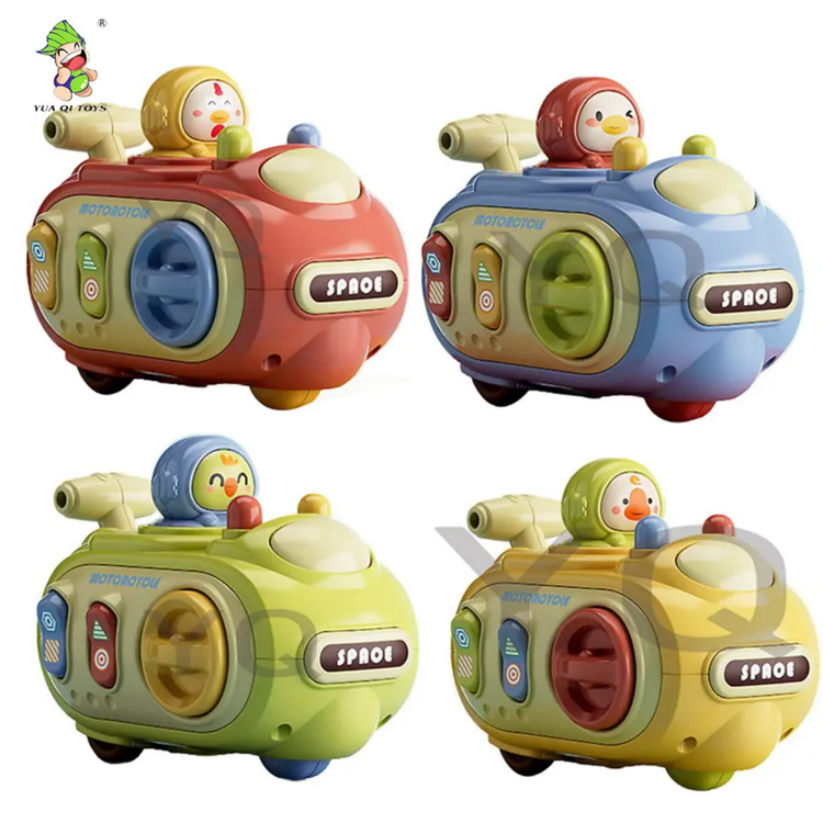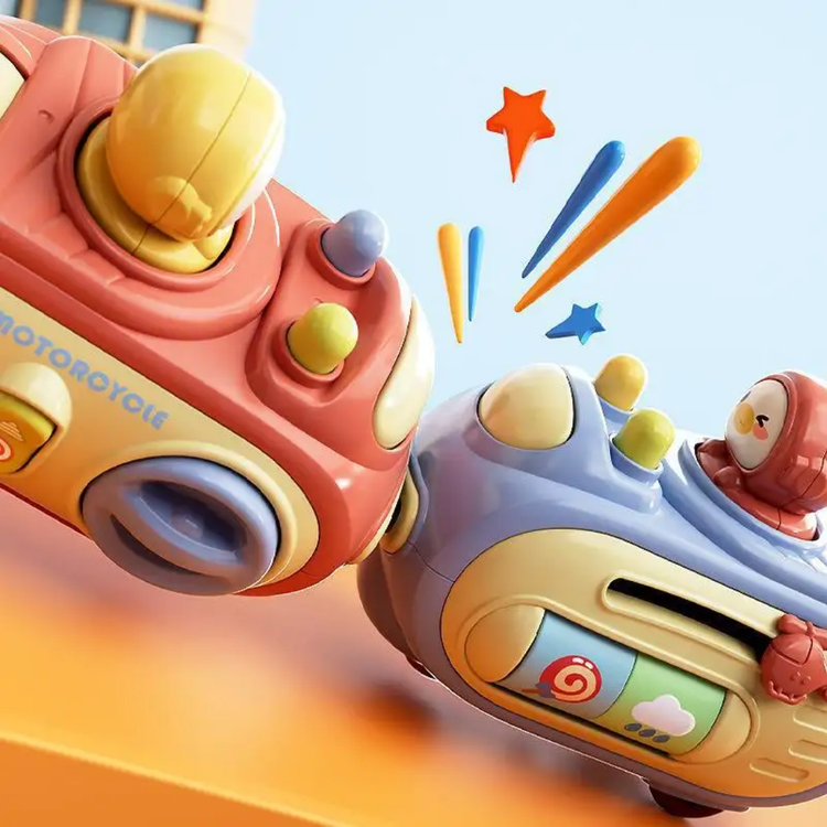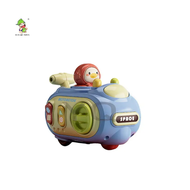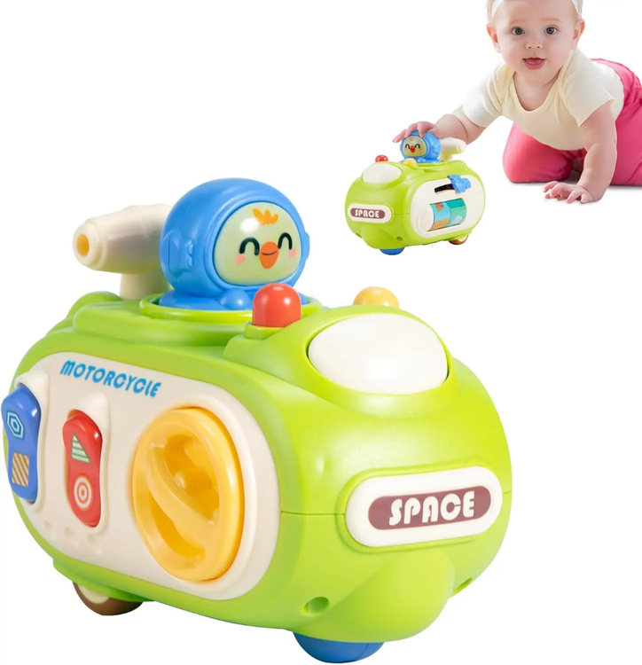 ماشین فشاری چند کاره وارداتی هر وجه از ماشین یک ابزار برای تقویت مهارت دست ورزی کودک دارد انتهای ماشین یک سوت جذاب قرار دارد