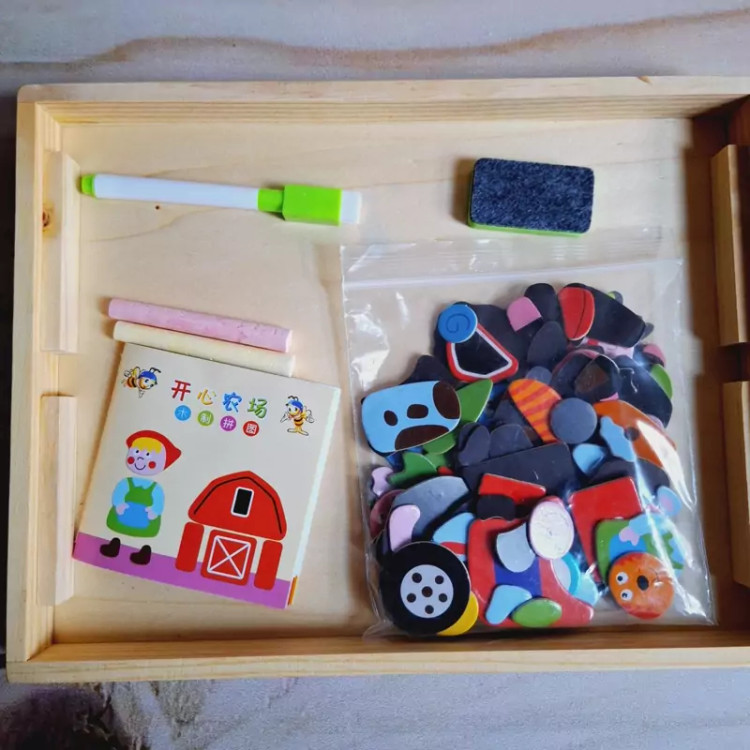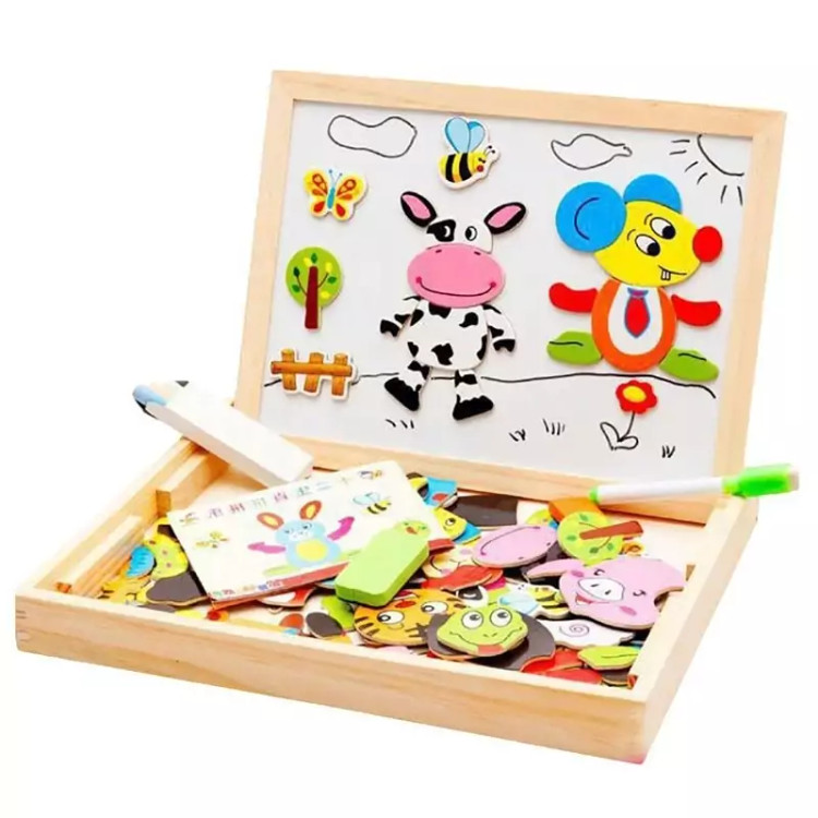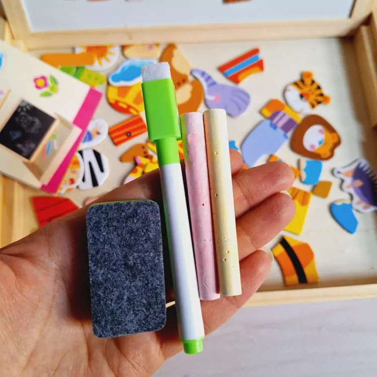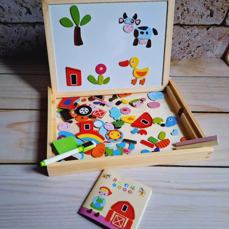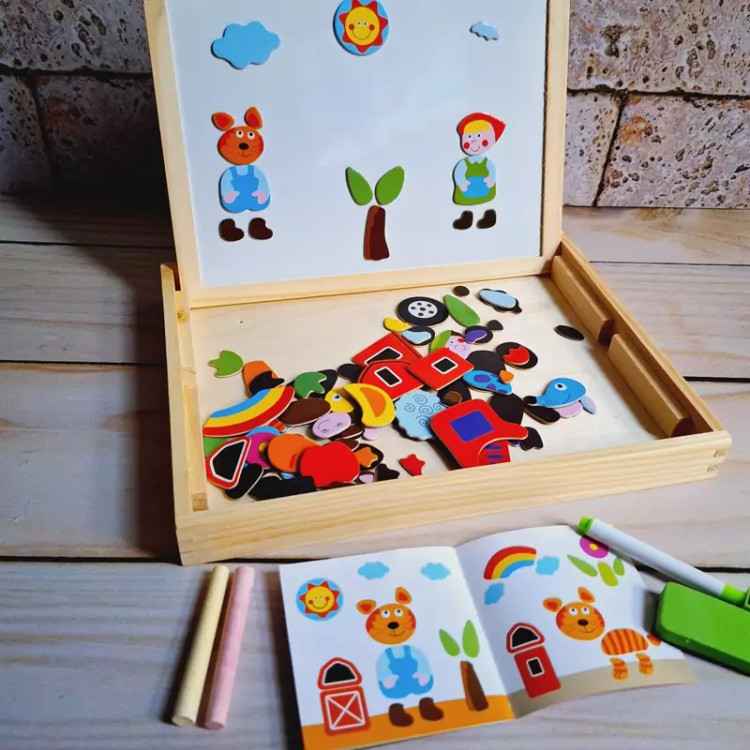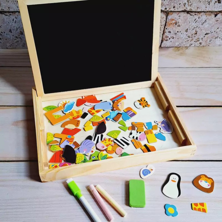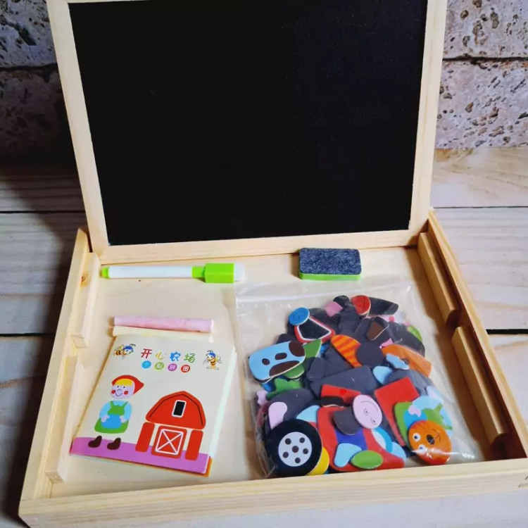 ⛔️ارسال طرح رندوم میباشد⛔️ 🔶️تخته سیاه و وایت بردی دو طرفه مگنتی آموزشی شامل حیوانات و اشیائ مختلف مگنتی، گچ، ماژیک وایت برد و تخته پاک کنِ. ♦️ کافیه اشکال مگنتی رو در اختیار کودک قرار بدین تا کلی تصاویر جذاب روی تخته چیدمان کنه 🎨همچنین با استفاده از گچ و ماژیکی که درون بسته بندی این محصول قرار داره کودک میتونه بر روی تخته دو طرفه نقاشی کنه و لذت ببره 🌈این تخته کیفیت فوق العاده ای داره و چوبش با مقاومت بالا ساخته شده 👈ابعاد 30x23x3 سانتی متر 📍مناسب رده سنی بالای سه سال 🔵چه مهارتهایی به دست میاد؟ 🟢افزایش دقت و تمرکز 🟢تقویت هماهنگی چشم و دست 🟢شناخت حیوانات، اشیا، محیط 🟢تقویت دست ورزی