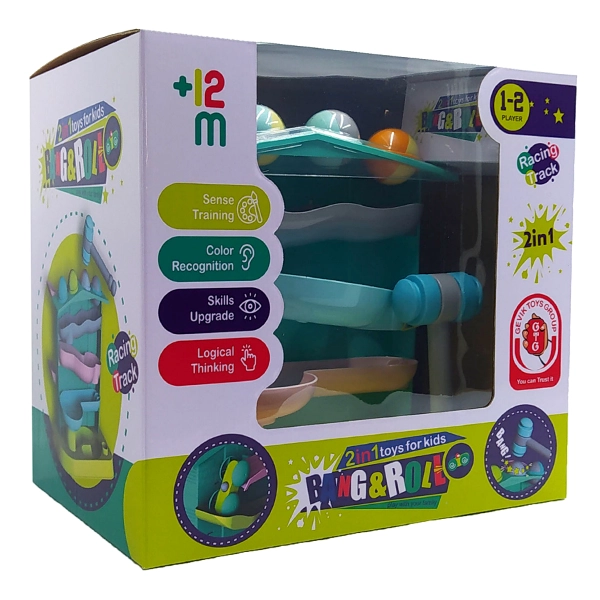 🎁 اسباببازی آموزشی «بنگ رول ۲در۱» | توپ و چکش سرسرهدار + مسیر ماشین