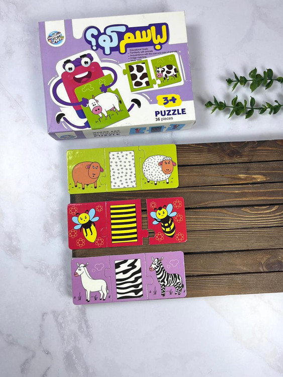 - پازل لباسم کو؟ کودک با تطبیق الگوهای بدن حیوانات با ظاهرشان، مهارت تشخیص و دستهبندی را تقویت میکند.