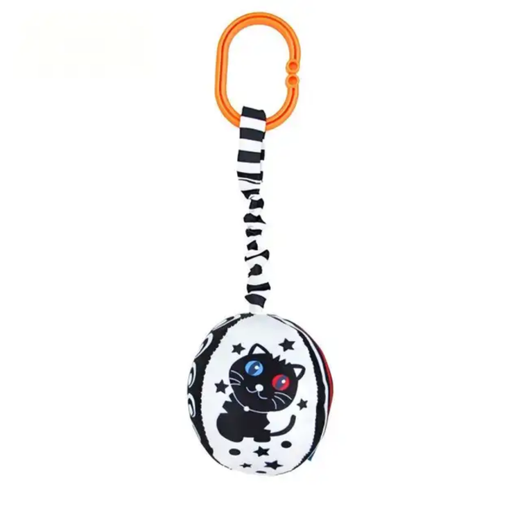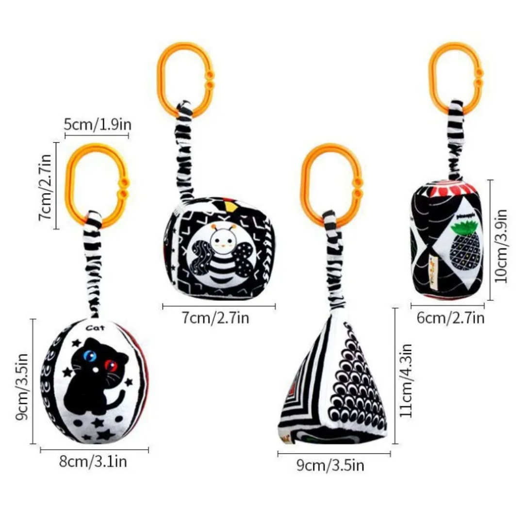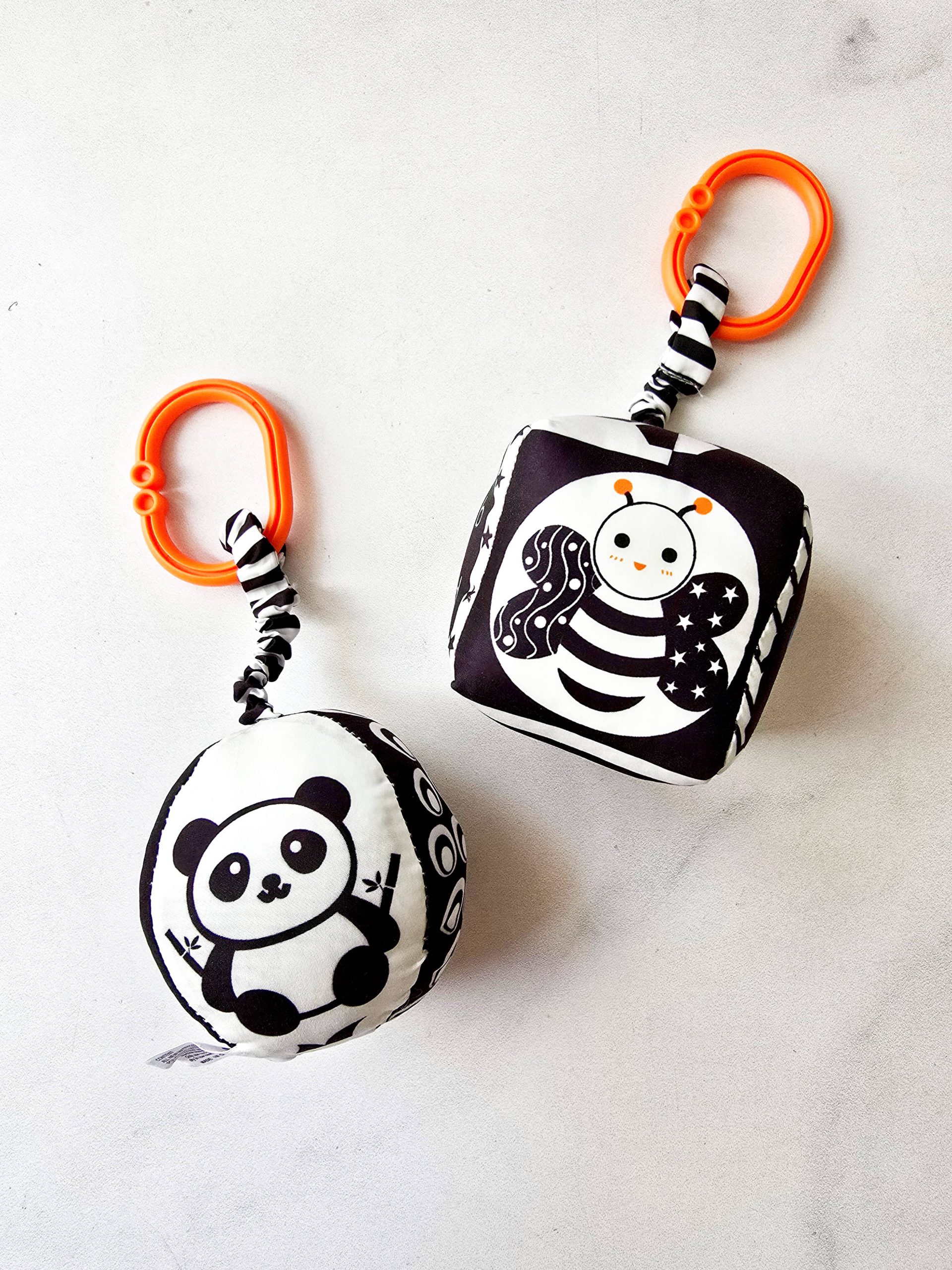 آویز پارچه ای سیاه و سفید نوزاد.توپ و مکعب حسی سیاه و سفید