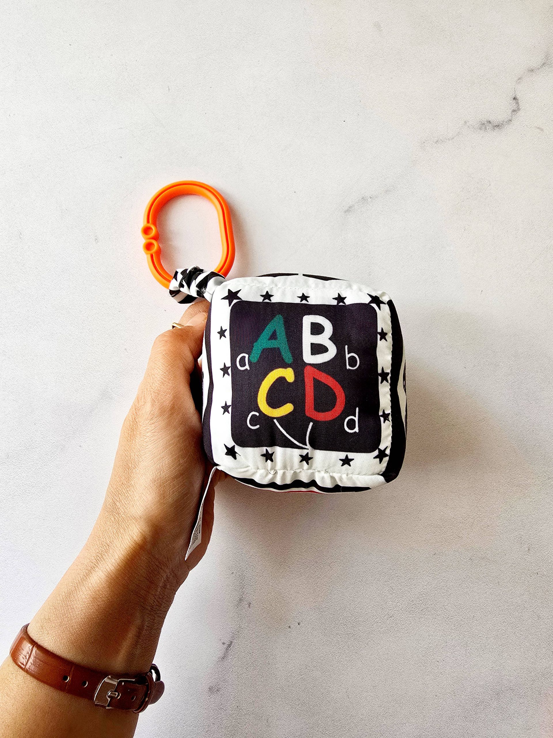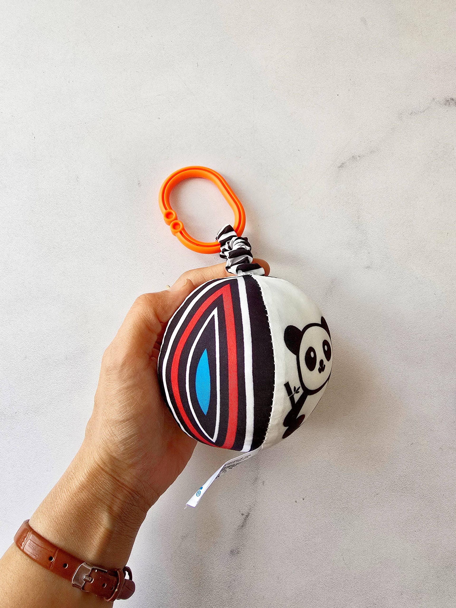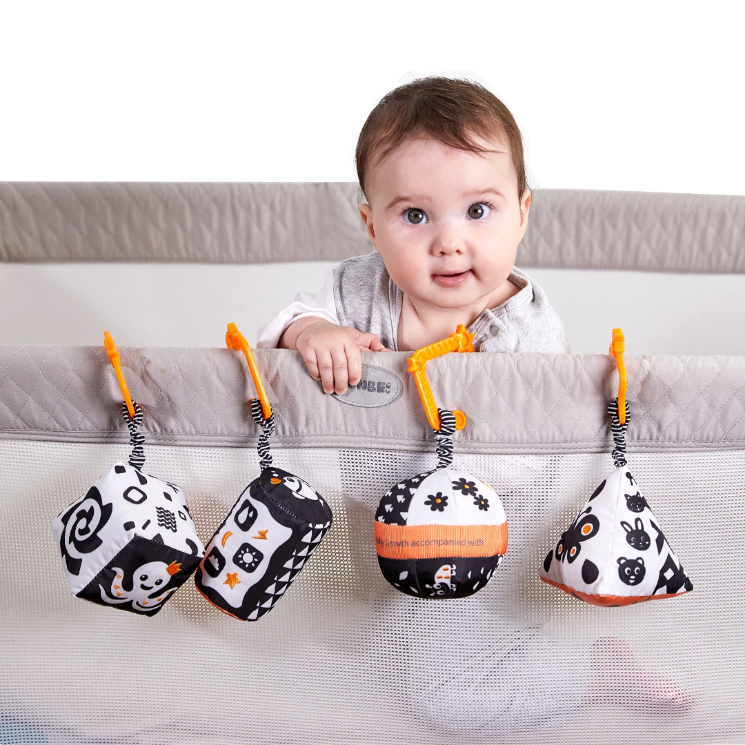 آویز پارچه ای سیاه و سفید نوزاد.توپ و مکعب حسی سیاه و سفید