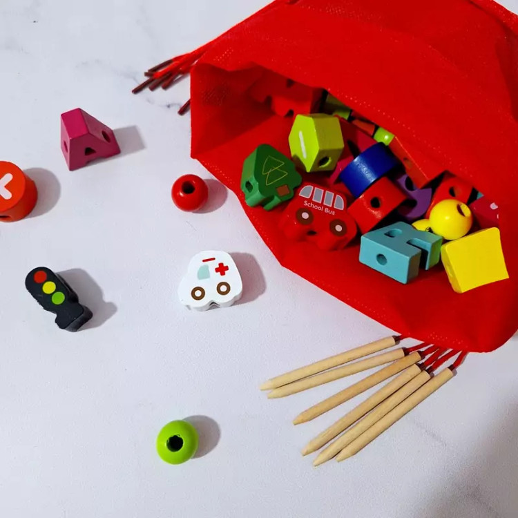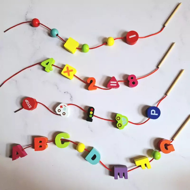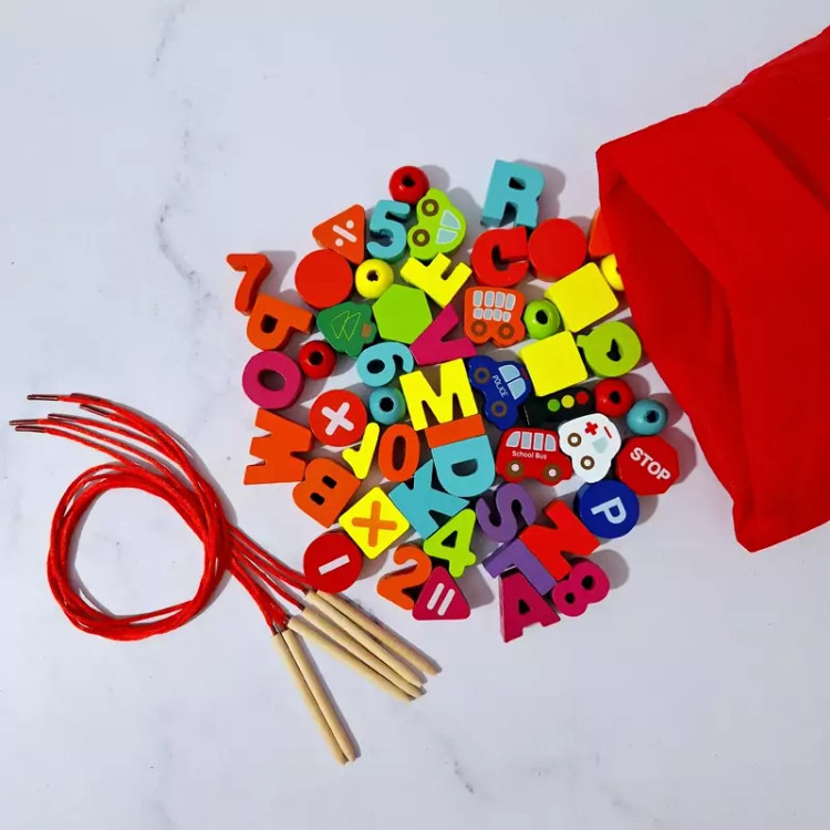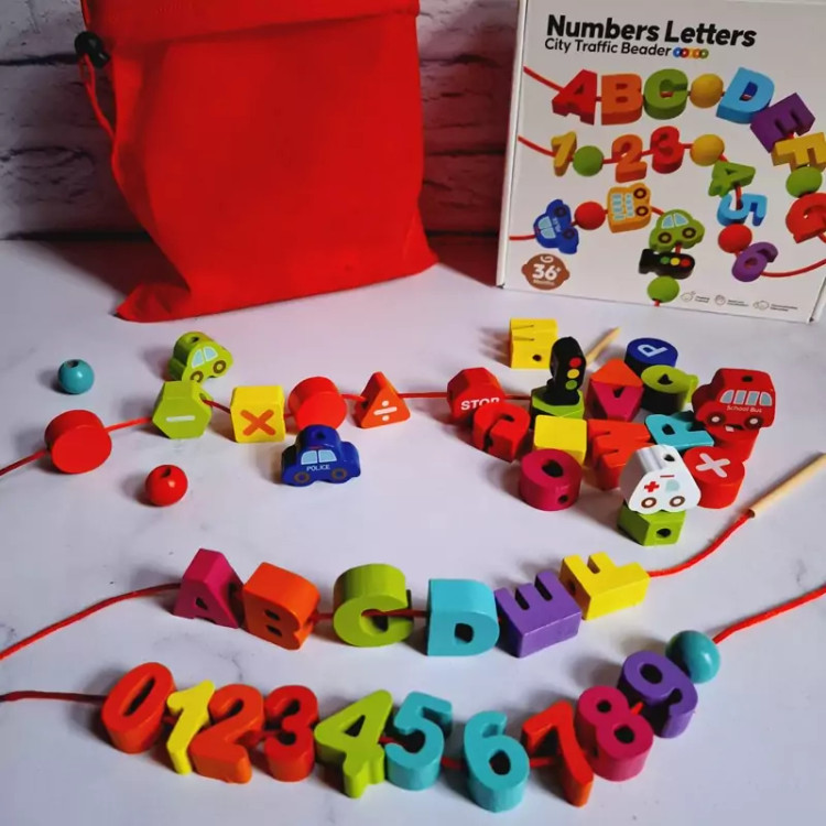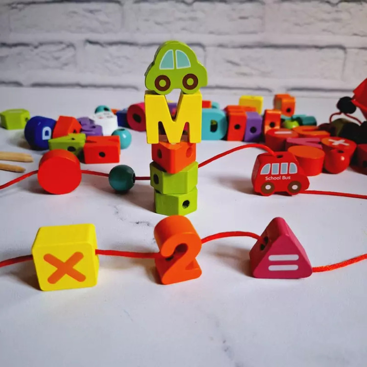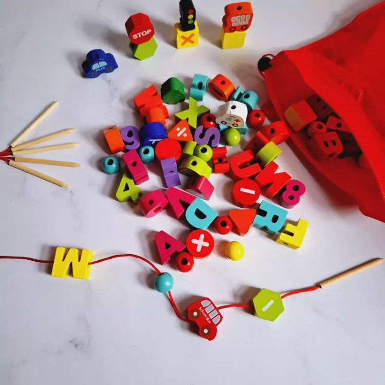 کامل ترین نخ و مهره ای که میبینی ایشونه🤭 چون از حروف و اعداد انگلیسی گرفته تا علائم راهنمایی رانندگی و اشکال هندسی و ...رو داخل جعبه ش داره 🔶️بازی فکری نخ و مهره چوبی یکی از بازی های جذاب و سرگرم کننده س که بچه ها با این بازی فکری میتونن با بازی و سرگرمی حروف اعداد لاتین را یاد بگیرن و علائم راهنمایی و رانندگی رو یاد بگیرن و با ریاضیات آشنا بشن و کلی کیف کنن 🌈بازی فکری نخ و مهره چون باید با هر دو دست انجام بشه، ضمن تقویت ماهیچه های ظریف دست کودک و افزایش تمرکز و تقویت هوش کودک به هماهنگی هر چه بیشتر بین چشم، مغز و دست کودک که در آینده برای عمل ساده ای مثل نوشتن که خیلی ضروریه کمک می کنه ♦️این وسیله شامل 75 مهرهی چوبی در رنگهای درخشان و شکلهای متنوع و 6 بند بافتهی رنگی صِرف نخ کردن مهرهها که فعالیتی جذاب و در عین حال مفید برای کودکانه 📦️هر باکس شامل: 👌75 مهره چوبی در رنگ ها و شکل های متنوع 👌5 بند بافته رنگی 👌یه کیسه برای نگهداری و حمل راحت تر 🎨جنس مهره ها از چوب مرغوب و با کیفیت 📍مناسب رده سنی بالای 2.5سال 🔵چه مهارتهایی به دست میاد؟ 🟢تمرین هماهنگی دست و چشم و هماهنگی ادراکی 🟢یادگیری اشکال هندسی و رنگهای مختلف 🟢تقویت ماهیچههای ظریف دست کودک و توسعه مهارت های حرکتی در خانه یا مدرسه 🟢آموزش مهارت طبقه بندی و ساماندهی 🟢یادگیری الگوسازی برای درک مفاهیم ریاضی 🟢یادگیری مهارت های لازم برای نوشتن در مقاطع بالاتر 🟢تمرین حوصله و صبوری برای دقت و تمرکز روی یک کار