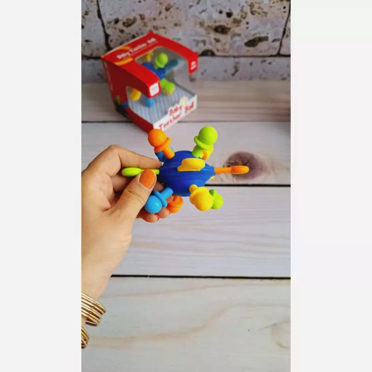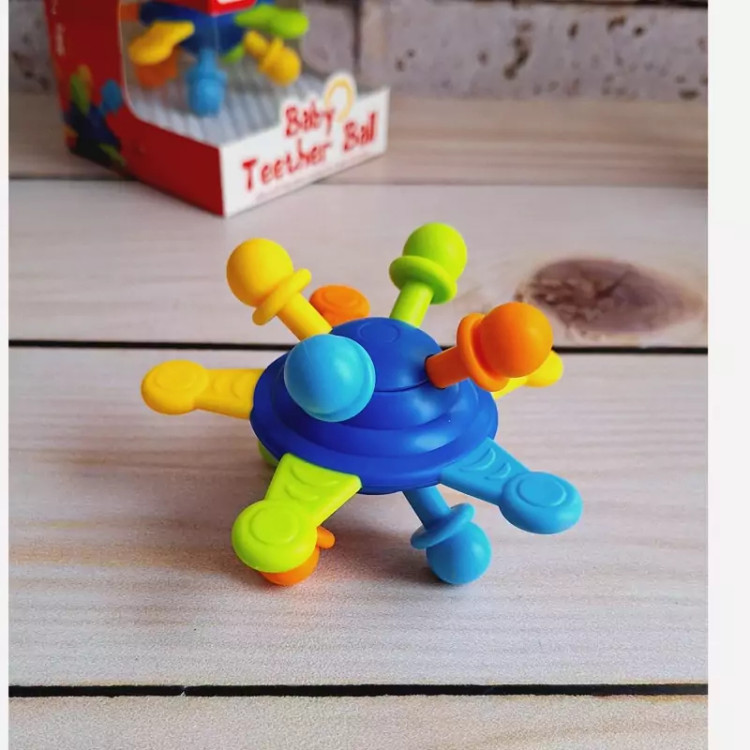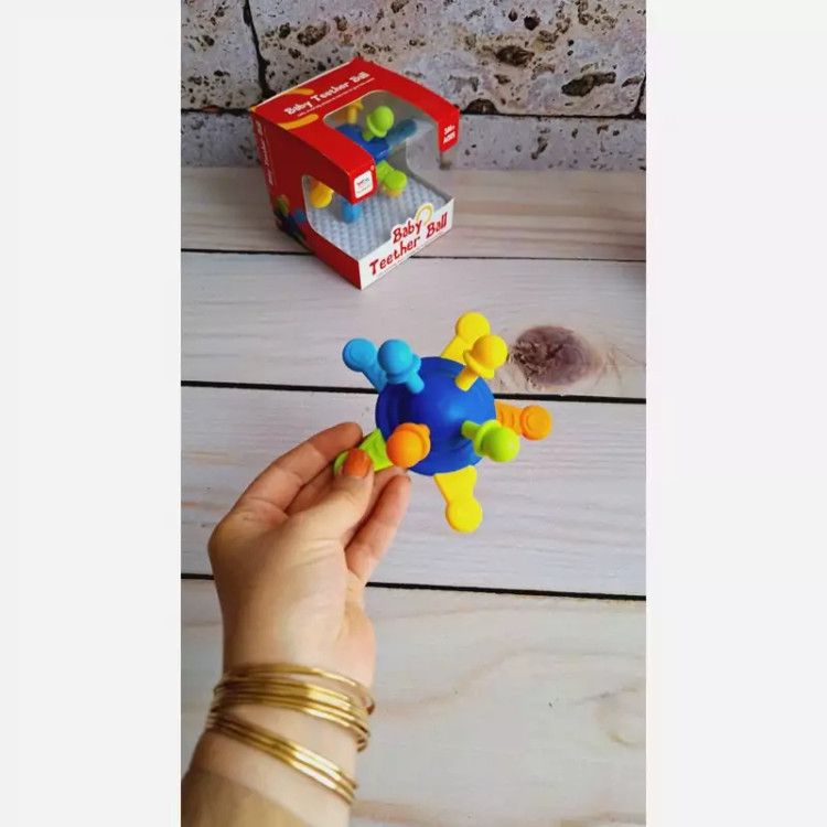 🔶️دندان گیر جغجغه ای توپی مناسب نوزادان از بدو تولدِ.این جغجغه دندونگیر با تولید صداهای ملایم و جذاب جغجغه ای،نوزاد رو تشویق به بازی میکنه. ♦️ برجستگی های روی جغجغه برای رفع خارش لثه نوزاد و کودک موقعی که دندون درمیارن خیلی موثره. یکی از ویژگی های مهم این محصول قابلیت شستشو و استریل کردن اونه . این دندونگیر فاقد هرگونه لبه تیزِ و برای بازی کودک کاملا ایمنِ و خیلی هم سبُکِ؛قسمت های سیلیکونی محکم و مقاوم هستن و به راحتی جدا نمیشن 🌈 جنس مواد تشکیل دهنده از سیلیکون بی ضرر و فاقد BPA و از مواد کاملا طبیعی ساخته شده؛ برای تقویت حس بینایی ، شنوایی و قوای حرکتی کودک بهترین گزینه س 📍مناسب رده سنی بالای 3ماه