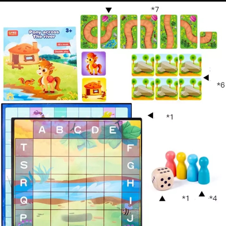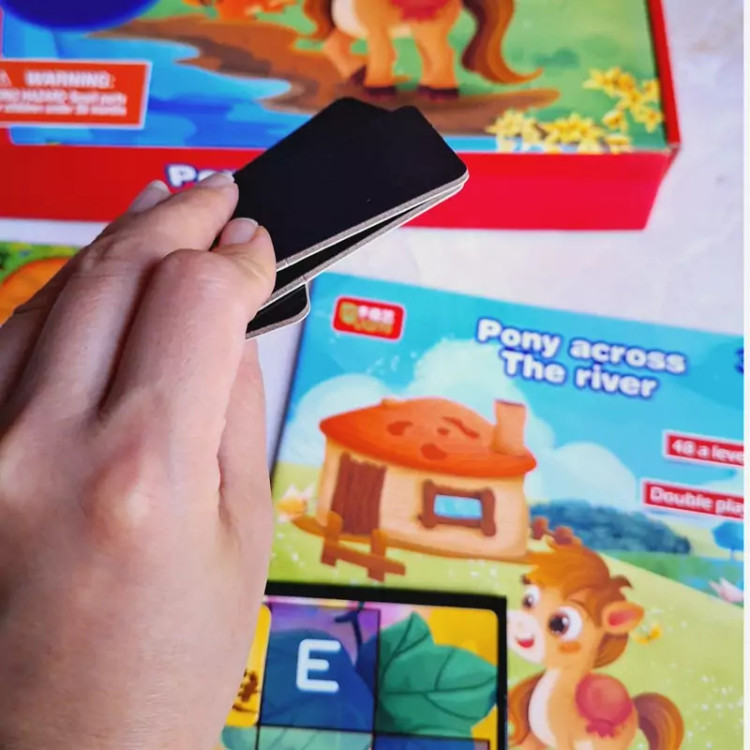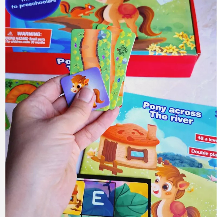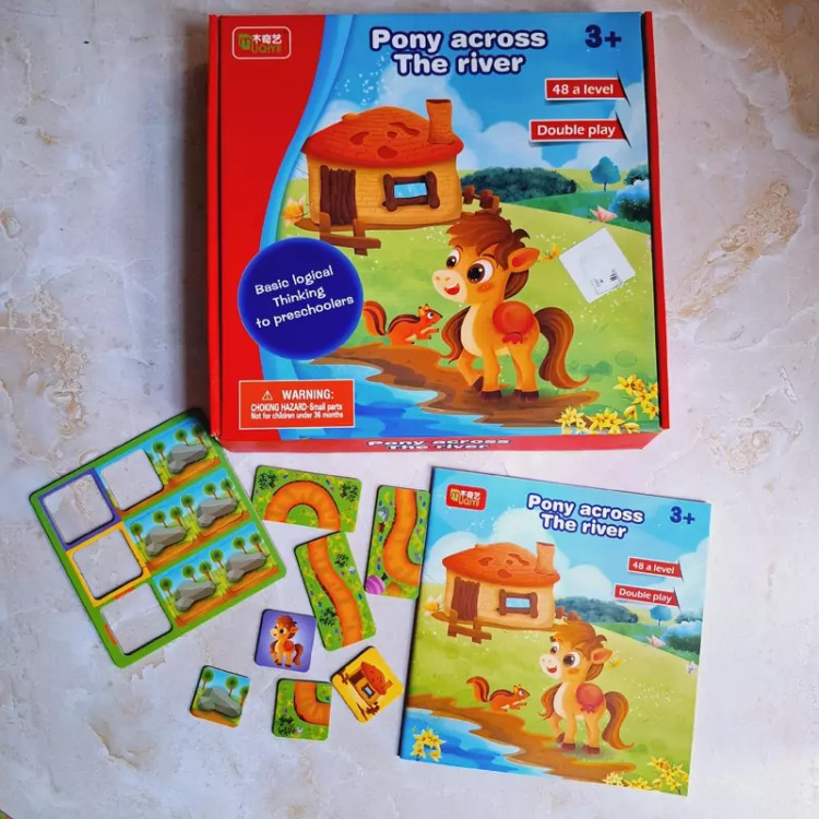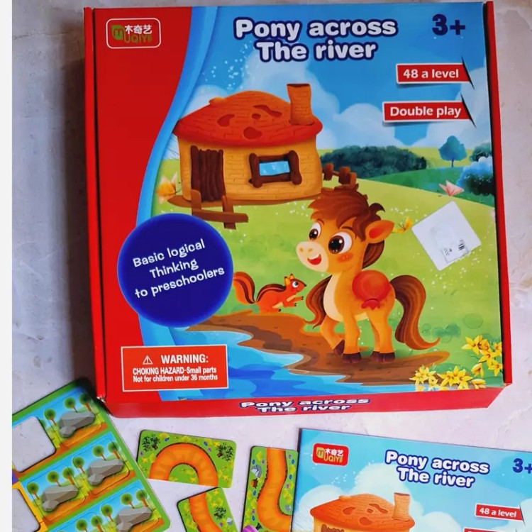 باهات شرط میبندم این بازی رو کمتر جایی دیدی☺️چون خیلی خاص و خفنه 🧩بازی چالشی پونی شامل یه صفحه بازی مگنتی که شطرنجیه،یه دفترچه که شامل 48چالشِ،4عدد مهره و یه تاس چوبی و تعدادی مسیر و مانع برای حل چالشِ 🔶️بازی به دو صورت انجام میشه. 👈اول به این صورتِ چالشی طبق دفترچه الگو،کودک باید مسیرهای پونی رو طوری بچینه که پونی به خونه ش برسه 👈دوم مارپله معروف که کوچیک و بزرگ عاشقشن 📍مناسب رده سنی بالای سه سال 🔵چه مهارتهایی به دست میاد؟ 🟢تقویت مهارت حل مسئله 🟢افزایش دقت و تمرکز