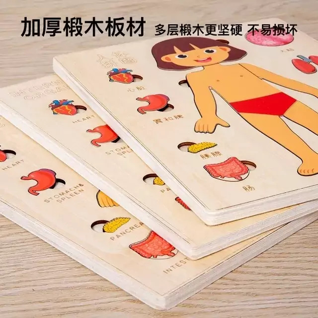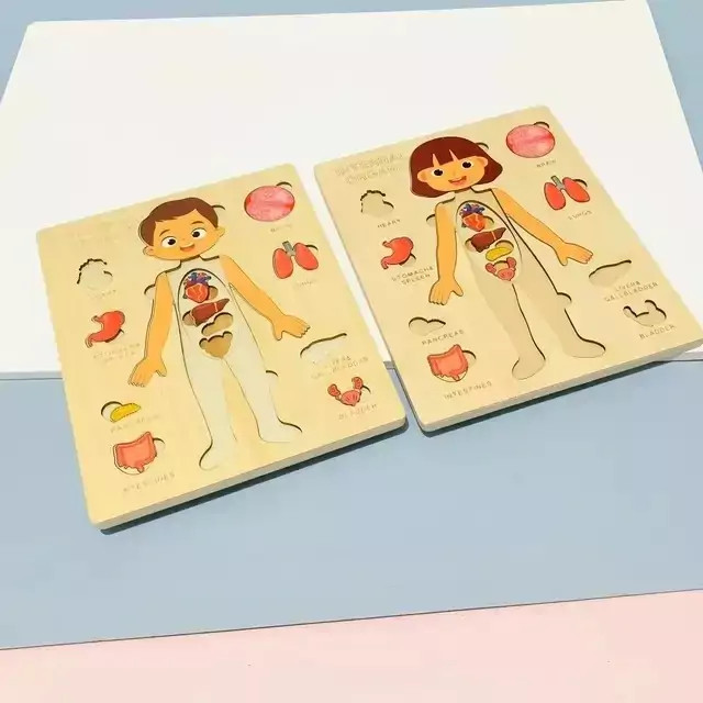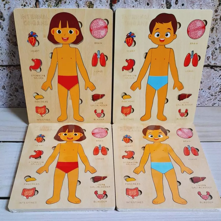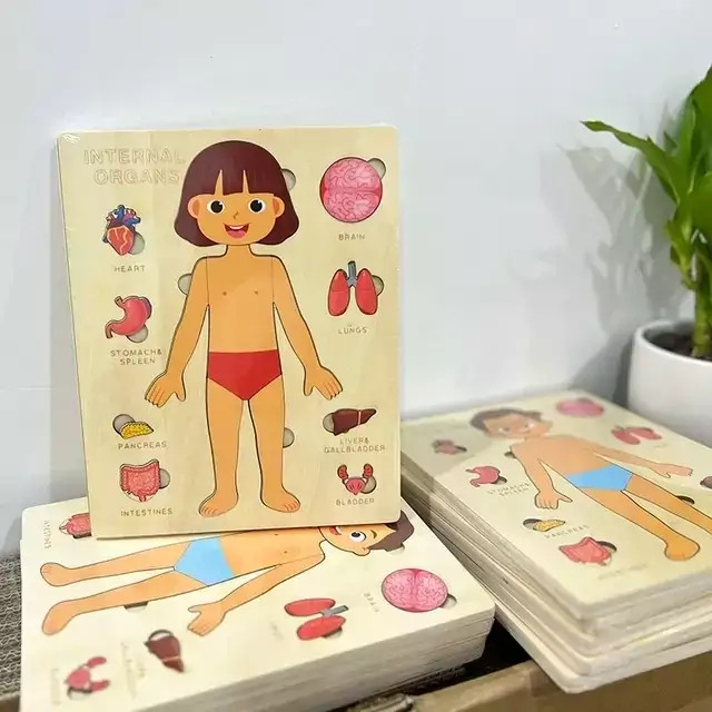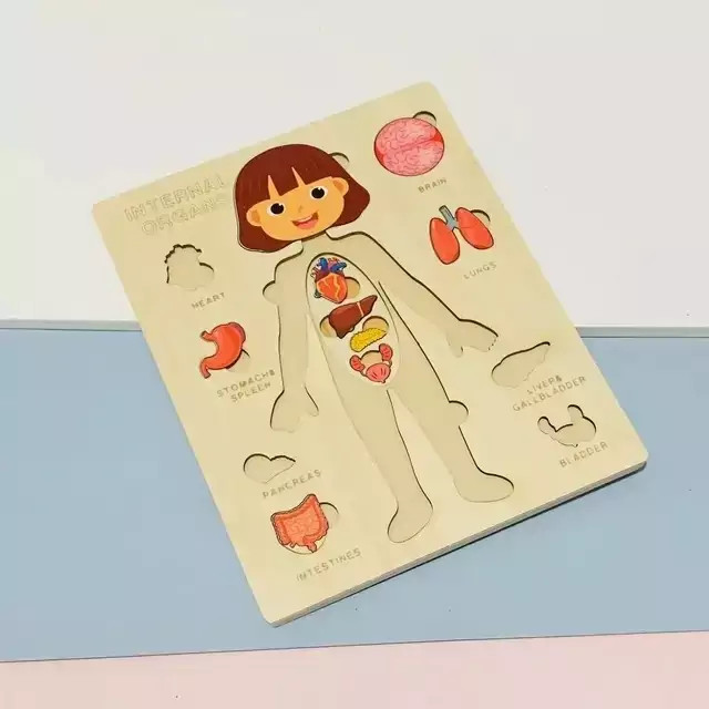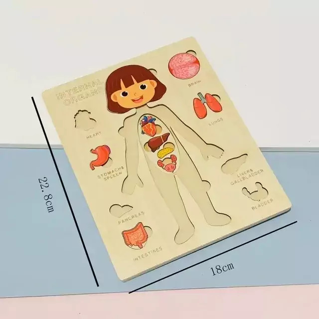 دلبندت میدونه داخل بدنمون چه خبره؟میدونه معده،روده یا حتی ریه کدوم قسمت از بدن قرار داره؟اگه اعضای بدن رو بهش آموزش ندادی این پصت مخصوص خودته😊 🧩پازل چوبی آناتومی بدن از یه صفحه چوبی در ابعاد 22.8*18 سانتی متر تشکل شده. روی این صفحه تصویر یه انسان که قسمتی هایی از بدن اون به صورت پازل طراحی شده قرار داره، قسمت های کناری صفحه اندام های داخلی بدن قرار داره و زیر هر کدوم از اعضای داخلی اسم انگلیسی اعضا نوشته شده 🔶️قطعات پازل به صورت لایه لایه روی هم قرار گرفتن و وظیفه کودک نوپا اینه که که اندام های داخلی، ماهیچه ها، بدن رو در جای صحیح خود قرار بده و با قسمت های مختلف بدن و اندام خصوصی خودش آشنا بشه 🎨نگم از کیفیت کار چوبیِ خوش رنگ و لعاب
