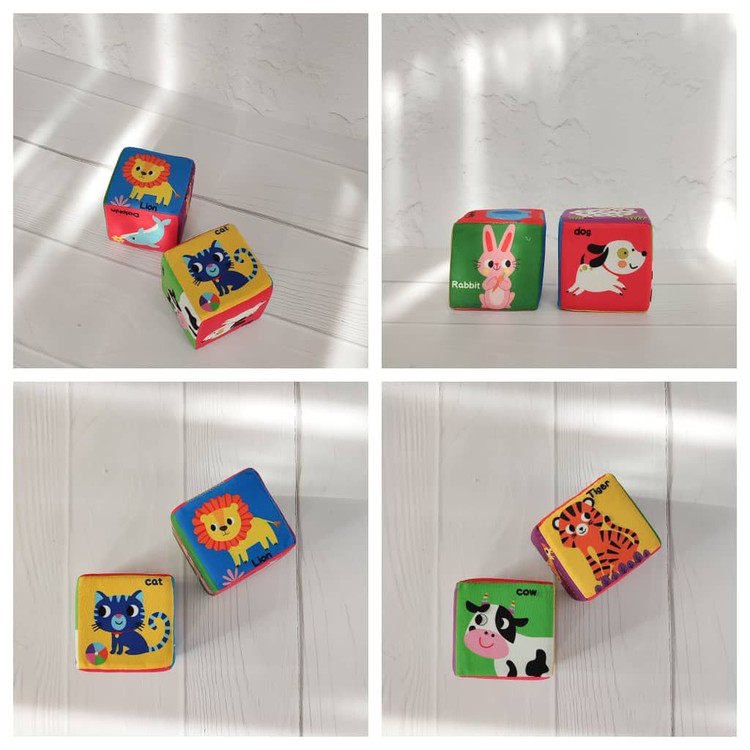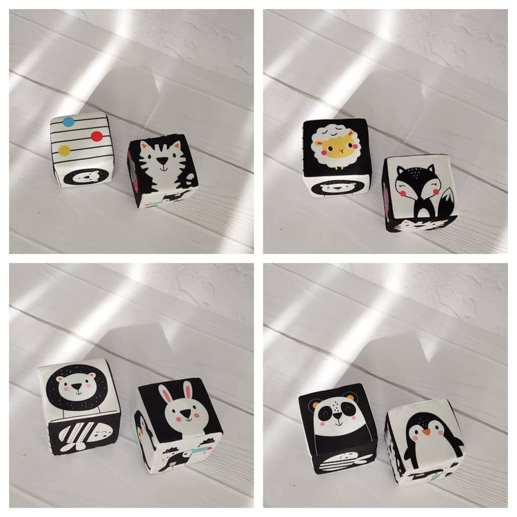 🔶️مکعب های پارچه ای سیاه و سفید و رنگی که هر پک شامل دو تا مکعب نرمالو و جذابِ که روی هر وجه مکعب اشکال بامزه از حیوانات و حشرات و ... وجود داره و داخلش جغجغه س که وقتی نی نی تکونش میده صدا میده 🎨جنس مکعب ها و پارچه ها مخمل با قابلیت شست و شو و ضد حساسیتِ،دوختش عالیه و مهم تر اینکه ایمنِ و خطر بلعیدن و پاره شدن نداره