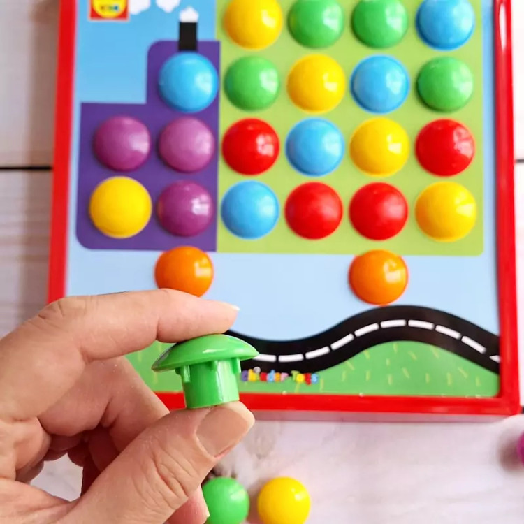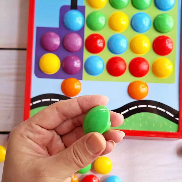 🔶️آموزش رنگ دکمه دکمه شامل یک صفحهی پایه، 12 کارت تصویر رنگی سوراخدار و 46 دکمهی رنگی پیندارِ، هر بار یک کارت رو روی پایه قرار داده از کودک بخواین با دکمههای رنگی اونو کامل کنه. با این کار علاوه بر شناخت رنگها و زبانآموزی، قوهی تخیل کودک نیز پرورش پیدا میکنه و بر خلاقیتش افزوده میشه در بین دکمههای رنگی دو دکمهی طرح چشم هم وجود داره که از آنها میتوان برای درست کردن حیوانات و تجسم بهتر آنها استفاده کرد. 📍مناسب رده سنی دو سال به بالا 🔵چه مهارتهایی به دست میاد؟ 🟢 تقویت اعتماد به نفس 🟢تقویت حس لامسه کودک 🟢هماهنگی دست و چشم 🟢افزایش خلاقیت 🟢مهارت حل مسئله 🟢آشنایی با رنگها 🟢تقویت قوه تخیل 🚚ارسال فوری به سراسر کشور