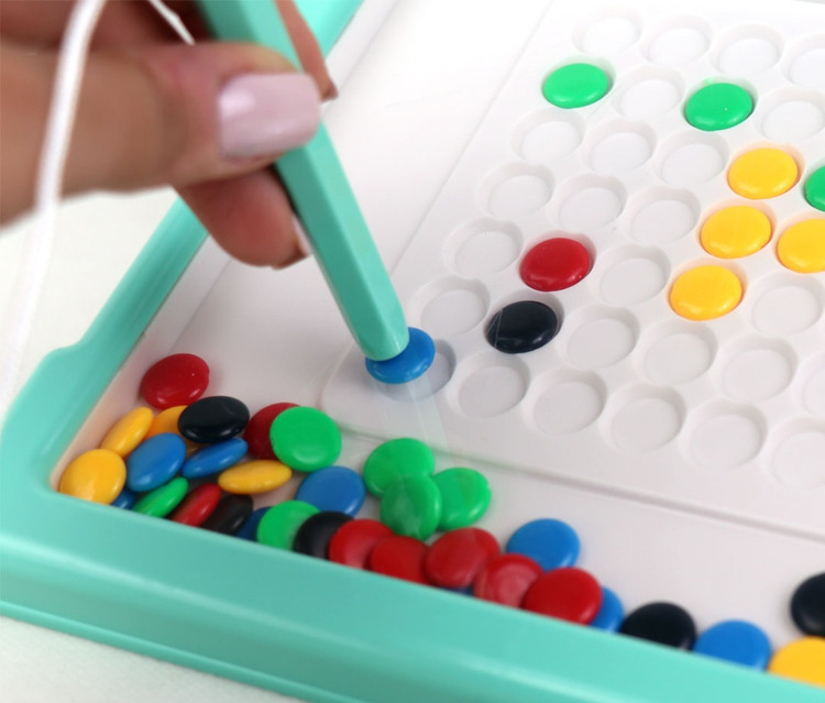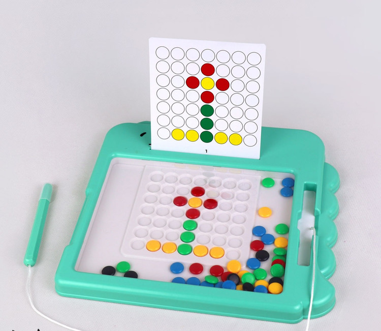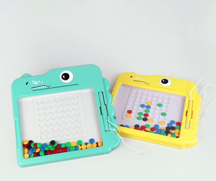 🎲برد مگنتی تمساحی جذاب یه بازی وارداتی باکیفیتِ که یه صفحه با روکش پلاستیک نشکن،تعدادی مهره رنگی ، قلم مگنتی و 7عدد کارت الگوی پشت و رو داره 🔶️کودک باید طبق الگو مهره های رنگی رو با قلم جابجا و چیدمان کنه 📍مناسب رده سنی 3سال به بالا 🔵چه مهارتهایی به دست میاد؟ 🟢تقویت مهارت الگویابی 🟢تقویت دقت و تمرکز 🟢مهارت حل مسئله 🟢تقویت عضلات ظریف دست 🟢هماهنگی چشم و دست 🟢تقویت هوش فضایی 🟢بهبود خلاقیت 🟢آموزش صبر